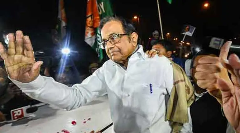 ஜாமினில் வெளியே வந்தார் காங்கிரஸ் முன்னாள் நிதி அமைச்சர் சிதம்பரம்